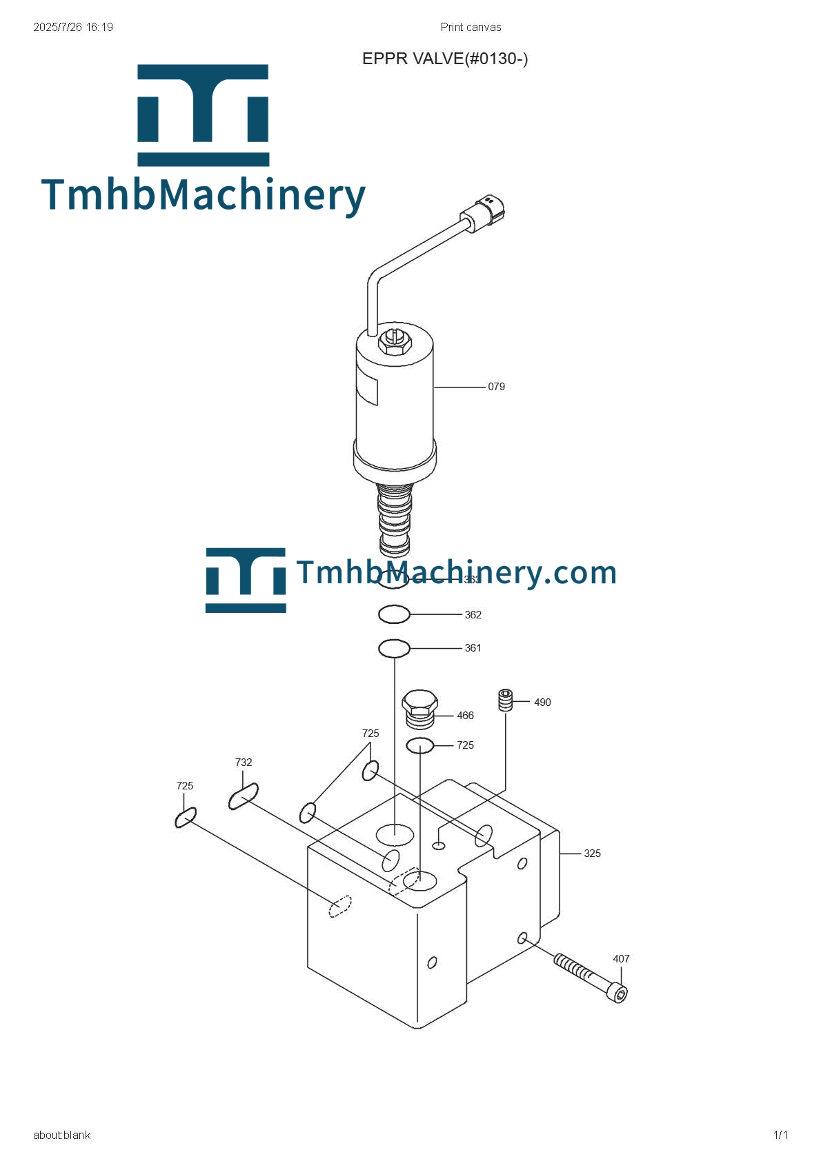 PART NUMBER : XJBN-00382 PART NAME: VALVE ASSY-EPPR BRAND: TmhbMachinery WEIGHT :0.4KG SIZE: 40 x 40 x 200 (LWH) COMMON PARTS:V9406285784